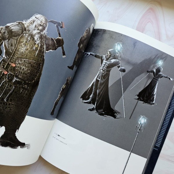Artbook tapa dura de 240 paginas que incluye diseños de armaduras, armas escenarios, personajes, bocetos y más. Incluye tambien el arte de los DLC