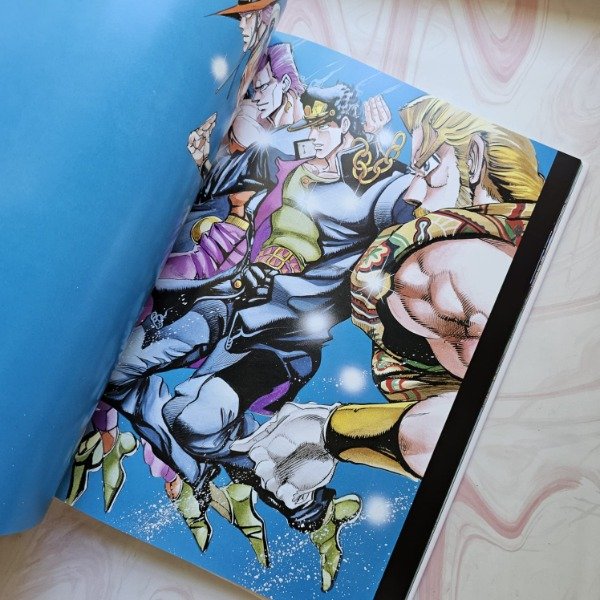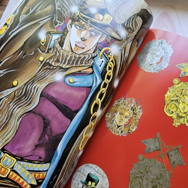 DISC 1. Ilustraciones: Libro con 378 páginas con ilustraciones a color de portadas de capítulos y volúmenes recopilatorios de Crusaders. Diamond is Unbreakable y Golden Wind. Otras ilustraciones promocionales también se incluyen.