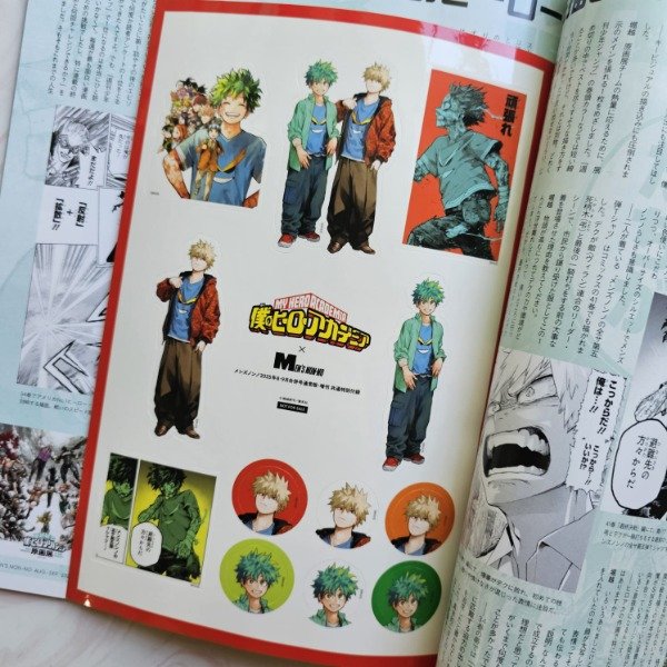 Revista de moda. Incluye plancha de stickers y set de stand de acrilico de My hero academia